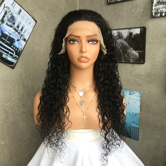 22" Natural Black Water Wave Lace Front Human Hair Wigs