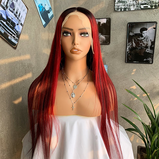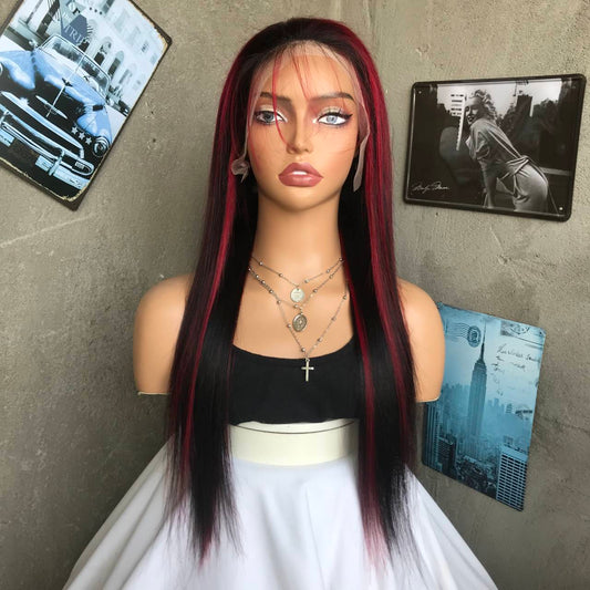 26" 1B&99J Long Straight Lace Front Human Hair Wigs