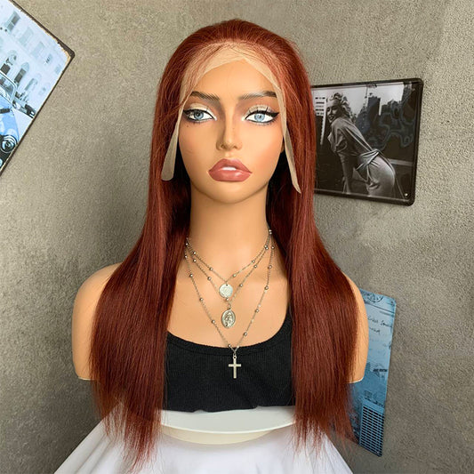 20" Reddish Brown Straight Lace Front Human Hair Wigs