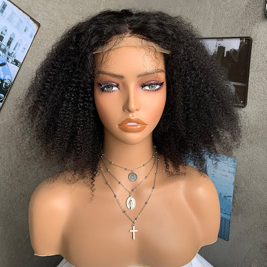 16" Natural Black Kinky Curly Lace Front Human Hair Wigs
