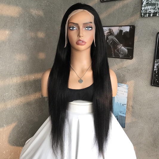 24" Natural Black Long Straight Lace Front Human Hair Wigs