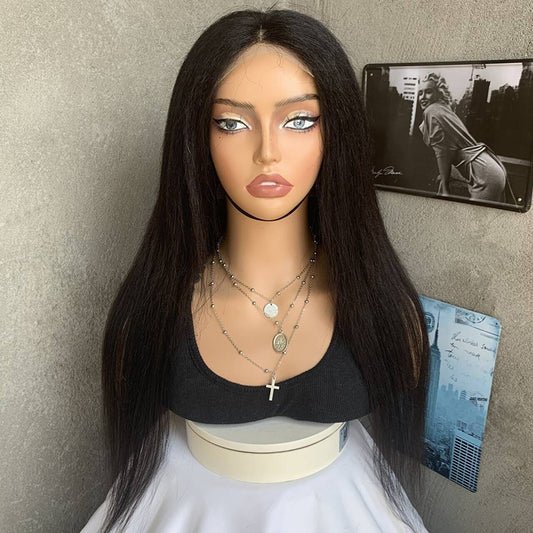 28" Natural Black Straight Human Hair Mixed Synthetic Wigs