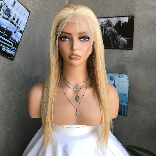 20" Blonde Long Straight Lace Front Human Hair Wigs
