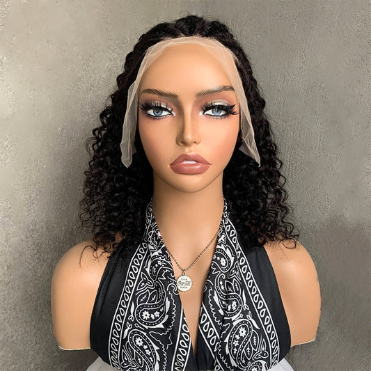 18" Natural Black Kinky Curly Lace Front Human Mixed Synthetic Hair Wigs