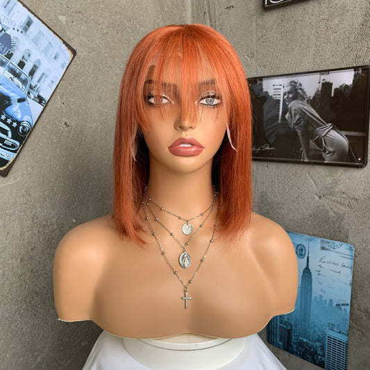 14" Red Straight Bobs Lace Front Human Hair Wigs