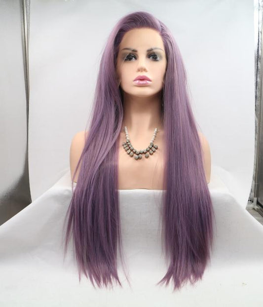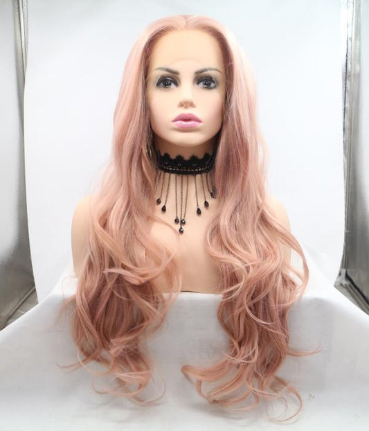 18" Pink Long Straight Lace Front Human Hair Wigs