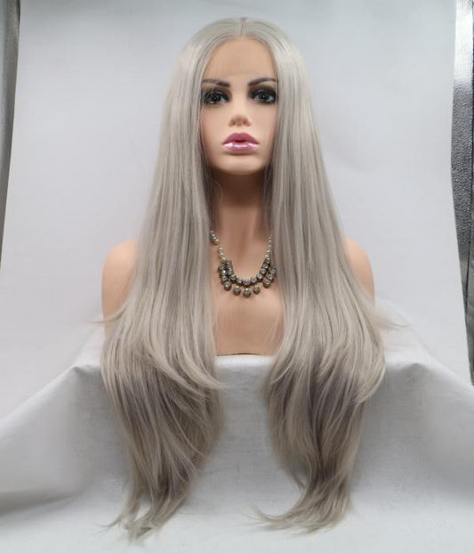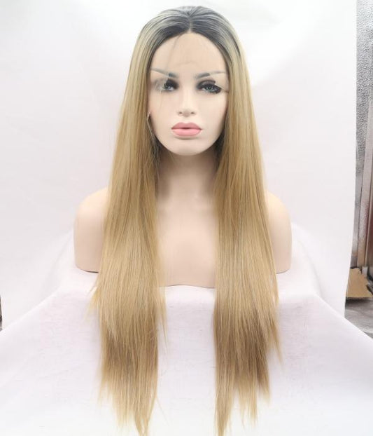26" Blonde Straight Lace Front Human Hair Wigs With Black Rooted